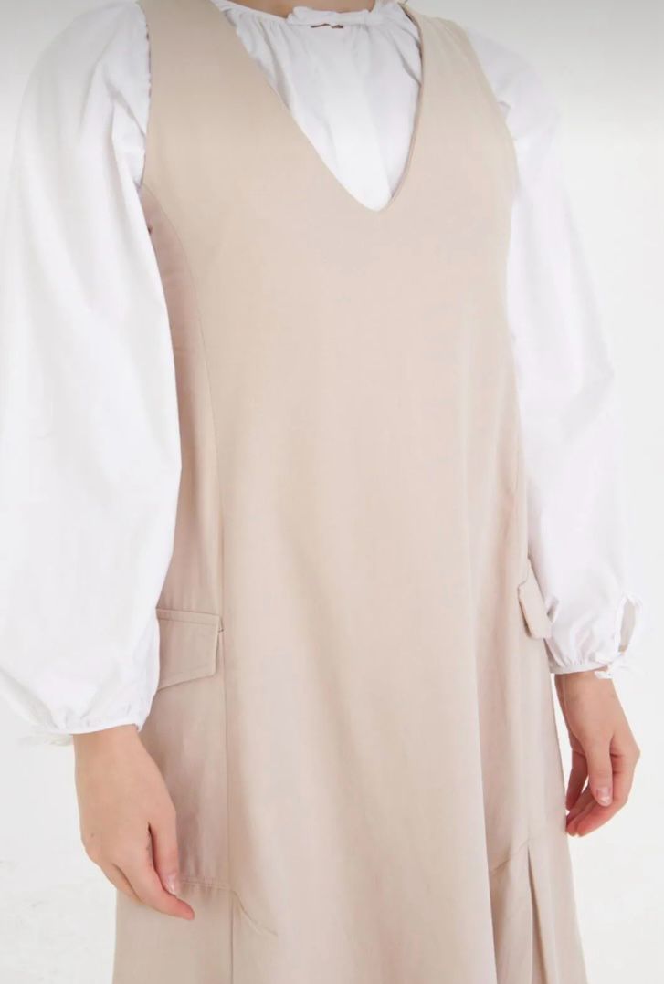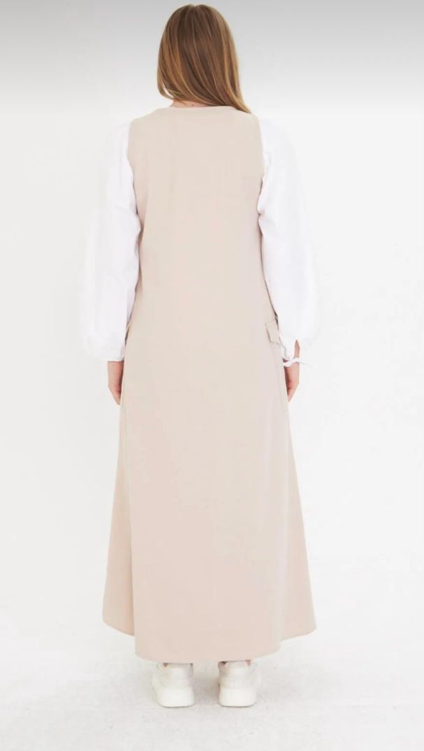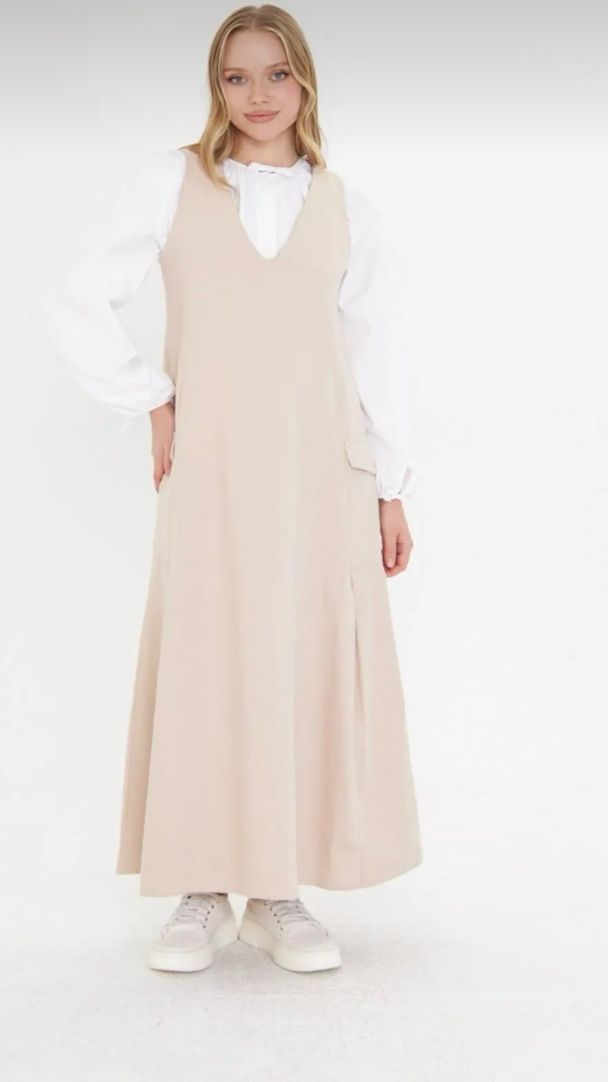 - -Bej ve Bordo rengi ile sadeliği ve şıklığı bir araya getiren bu uzun jile elbise, rahat kesimiyle gün boyu konfor sağlar.